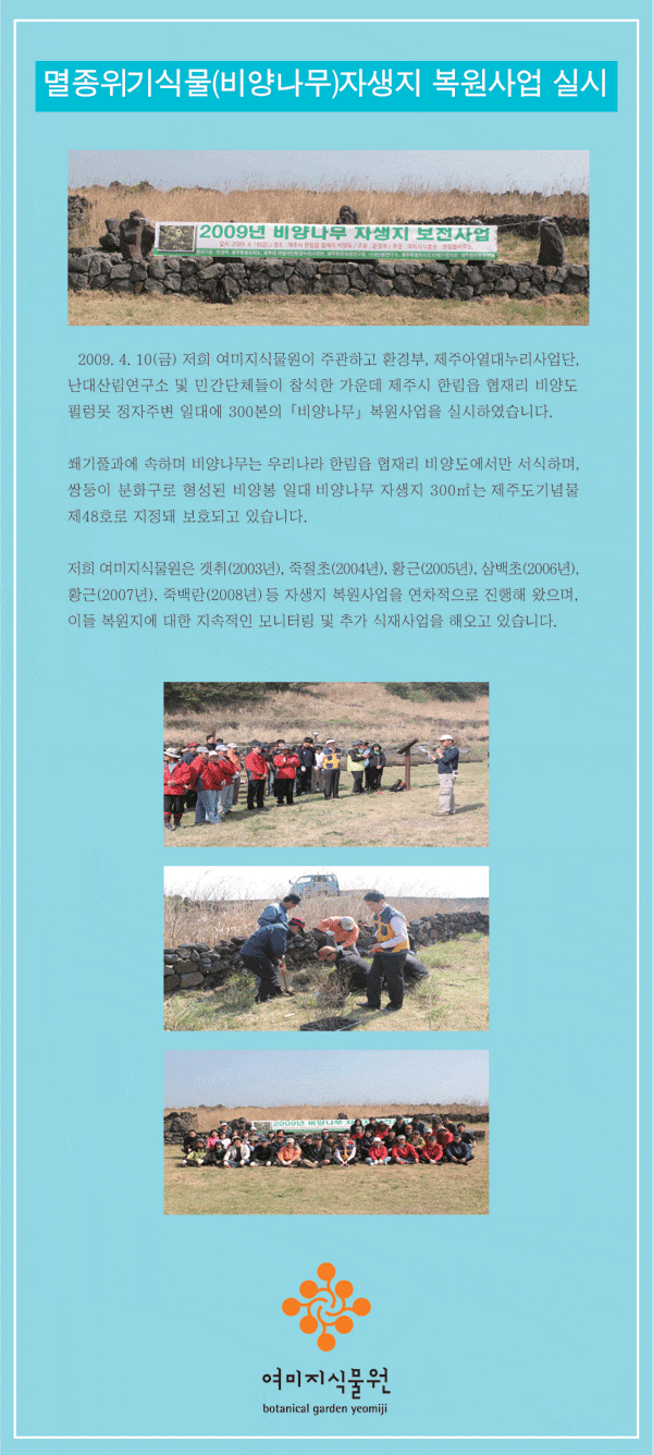 | 멸종위식물(비양나무)자생지 복원사업 실시 | ![]() |