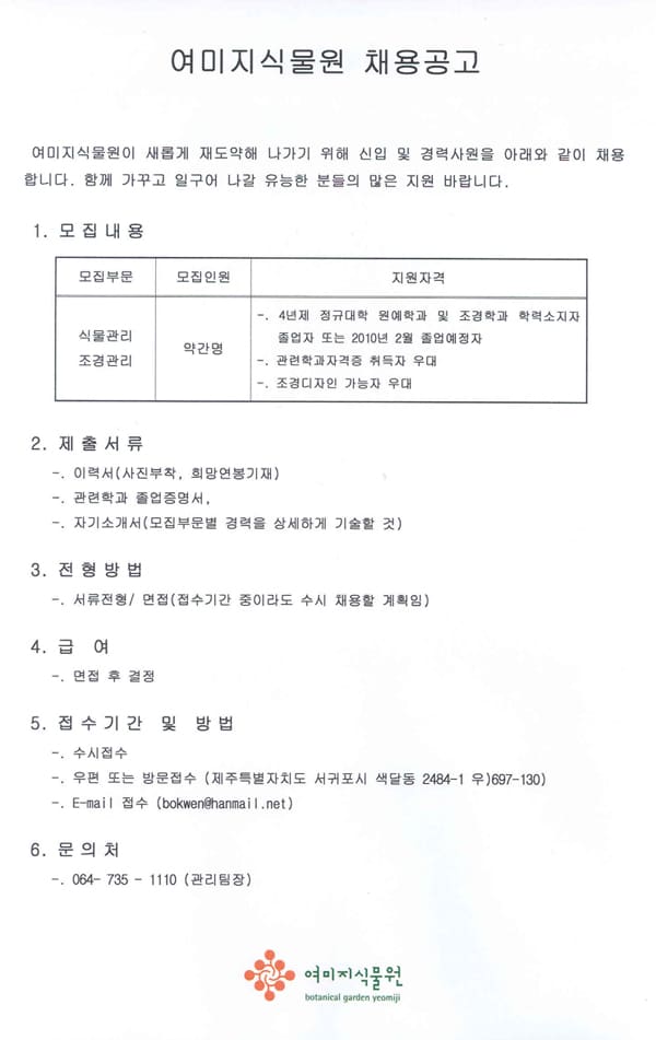 여미지식물원 사원채용 공고 | ||||