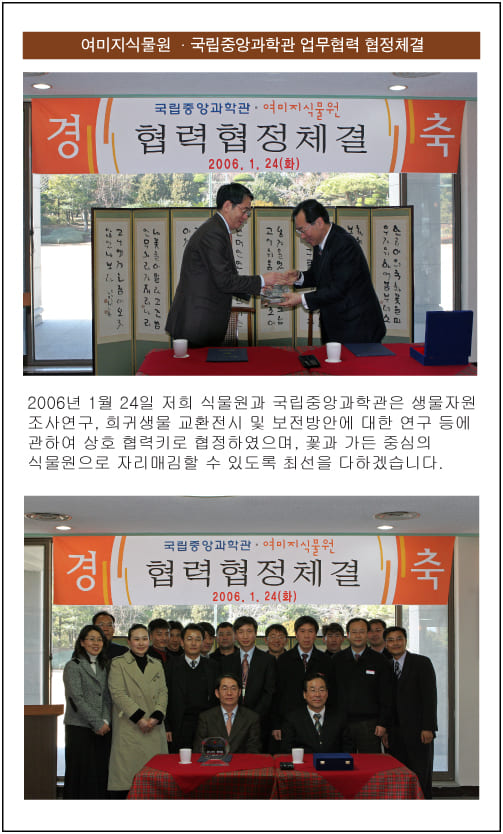 | 여미지식물원 · 국립중앙과학관 업무협력 협정체결식(2006年 1月 24日) | ![]() |