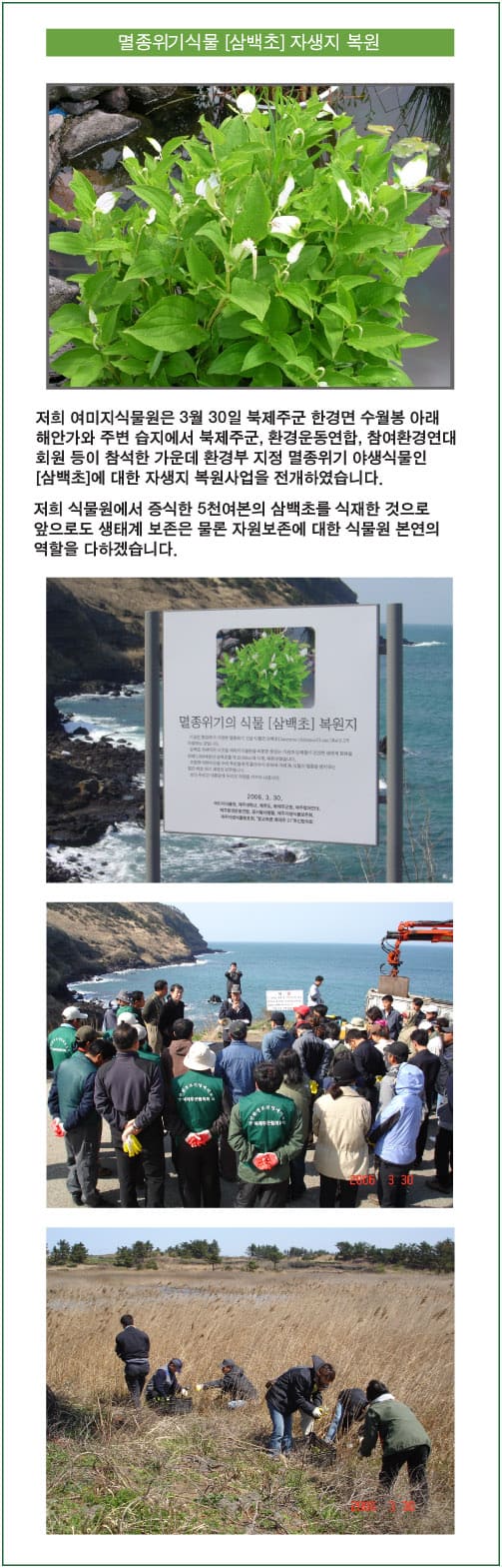 멸종위기식물 [삼백초] 자생지 복원사업실시 | ||||
