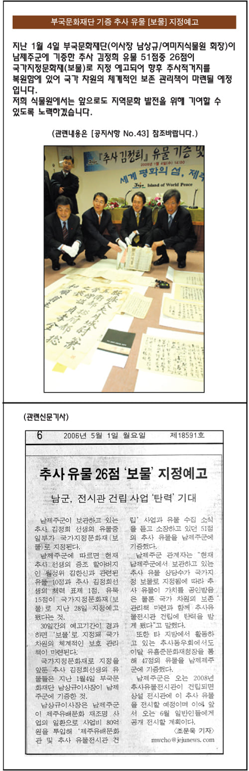 | 추사 기증 유물 보물지정 및 전시회 안내 | ![]() |