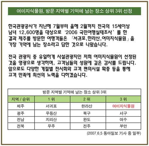 여미지, 기억에 남는 제주관광지 상위3위 선정 | ||||